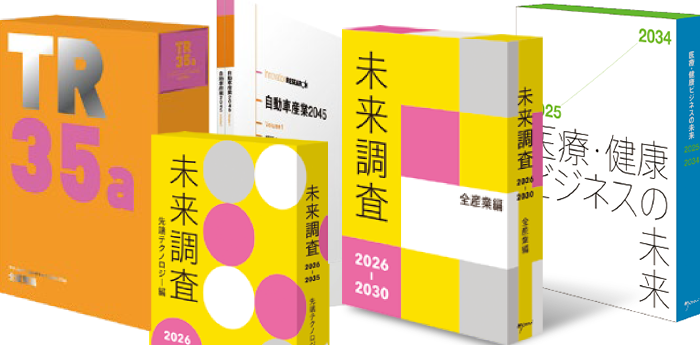 市場予測、独自調査による分析、未来へ向けたロードマップなどが、ITや電機・電子・機械、自動車・輸送機器、インフラ・エネルギー、流通・サービス、金融・不動産、医療・健康、農業・食品、素材・化学、建設・土木といった、あらゆる産業で活用されています。