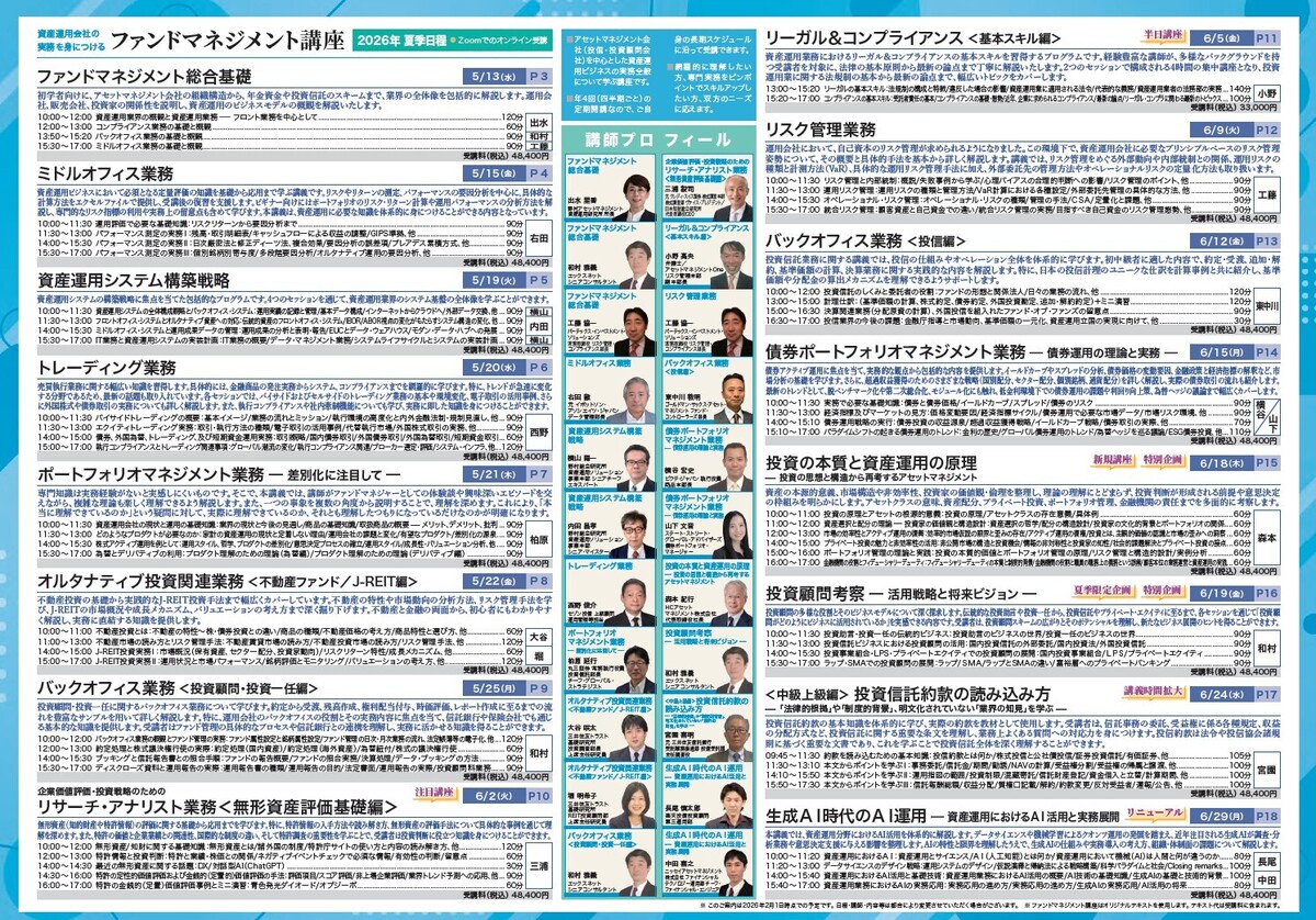 資産運用業界の概観と資産運用業務 ―フロント業務を中心として[120分] |