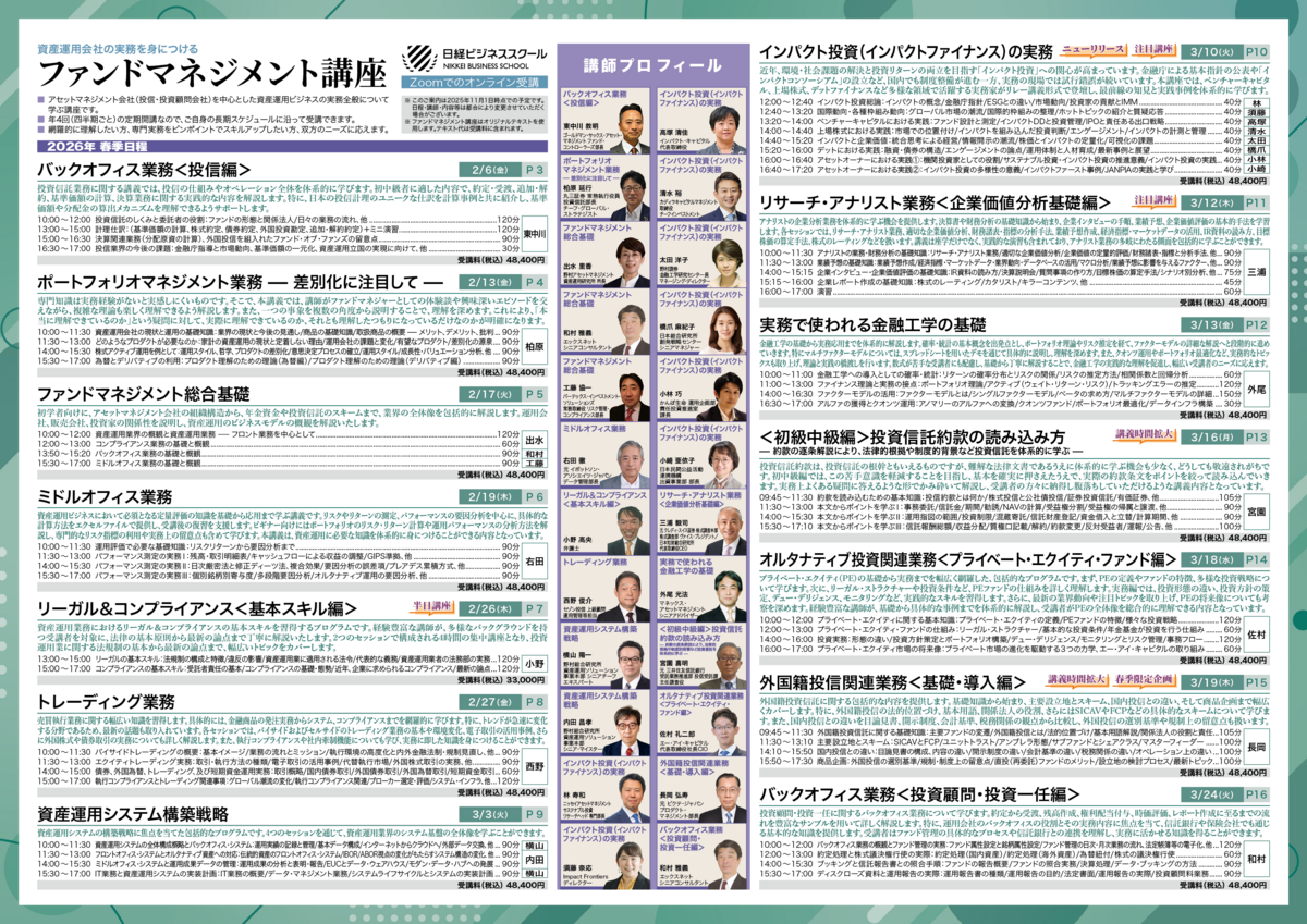 資産運用システムの全体構成概略とバックオフィス・システム[ 90分] | 2026年 春季 2026年 夏季 2026年 秋季 |